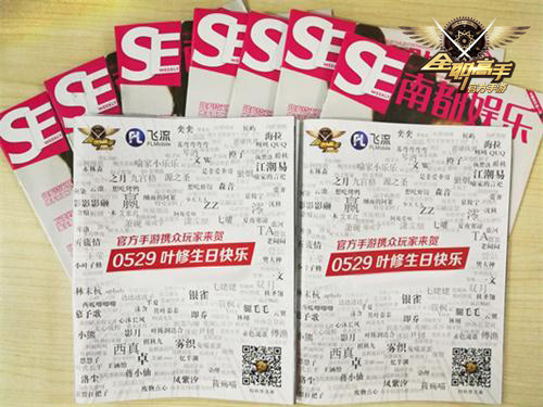 细心的粉丝已经发现,在最新的一期南都娱乐周刊上,《全职高手》同名正版手游携手玩家包下一整版,为心目中的偶像叶修送上生日祝福。如此疯狂的霸版行为,可谓是大手笔。图中,几百位叶修真爱粉联合签名,在他们看来叶修已经不再是小说里的虚拟人物,而是一种信仰,对现实的不妥协。
