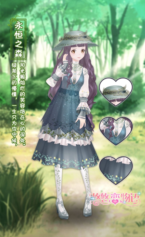 《悠悠恋物语》即将在6月20日迎来梦幻公测!打开你的魔法衣橱,随心挑选你的华丽美衣。本期带来了充满自然韵味的【永恒之森】。林间的美丽少女,如同落入凡间的可爱精灵,【永恒之森】带给你不一样的端庄。