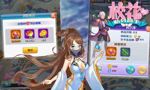 清纯学生装、黑长直御姐范、浪漫双马尾,在校花手游中,学姐学妹们将化身异能高手,助阵玩家并肩作战!真人配音的互动、羞昵姿态的技能施放、随着修炼而改变的服饰和造型,更有男友力满满的成长系统,让校花天赋步步开启,惩处邪恶的冒险派此刻越战越勇!