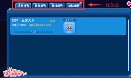 小秘书功能上线已经有一段时间,主要功能就是为友友们的日常游戏和接取完成任务,提供更方便的引导和更便捷的通道。在上线之后的这段时间,友友们也提出很多的意见和建议。我们的制作人员也采纳了一些比较好的建议,在本次的版本更新中,对小秘书功能进行了温馨的优化升级。任务的分类以及排序都更加的简洁,接取任务和完成任务的操作将更加便捷。