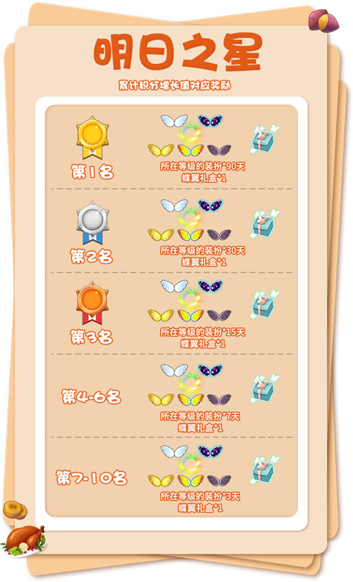 活动内容:活动期间,全新面部装扮:小星星和所有美食道具、蔚蓝之翼、星空之翼加入魔法翻牌!