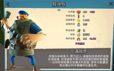 肉盾兵种,拥有极厚的血量,掩护性能非常优秀,可以掩护MM迅速推到大本,掩护坦克抗过狙击塔加农攻击群,是个非常优秀的肉盾。。