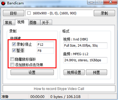 点“视频”,这里可以自行设置录制与暂停快捷键,推荐将“隐藏鼠标指针”的勾去掉,这样大家可以看到你的原始鼠标点击,需要添加点击特效可以勾选“添加鼠标点击效果”,下方“设置”中可以添加视频水印、分离音频等,后期可以更好的操作这里不用管。