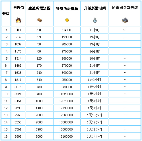 不同等级的司令部,高爆地雷可建造数量也是不同的: