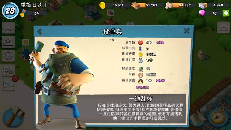 投弹兵:一种臂力过人,能够造成很高的远程区域伤害,但准确度不高的新兵种。(司令部达到16级时解锁)