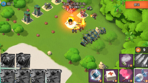 5.进攻方法:情况1,大量加农系在防御外围,少量加农后排,优先炸掉后排加农,胖子坦克同时登岸,配合震爆强推前排。