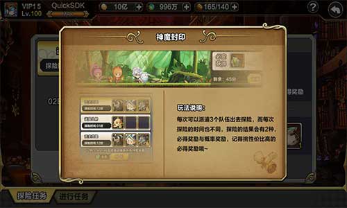 每次可以派遣3个队伍出去探险,而每次探险的时间不同所获得的奖励也不同,探险的结果会有两种,分别是必得奖励与概率奖励,记得挑战性价比高的必得奖励哦!