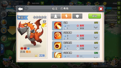 火焰咆哮:攻击距离3,将2格范围内的单位吸引只目标周围,造成巴蒂斯攻击力150%的伤害。