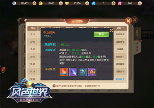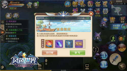 而且职业闯关是组队才能参加的哦,等级需要达到40级以上,而且队伍组成必须满足3人以上,所以记得叫上你的小伙伴一起,单枪匹马可不行哦,小编就因为曾经找不到搭伙的队友,一直等啊等啊,硬生生地站在NPC旁边40分钟……