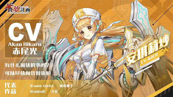 “有什么困扰的事吗?可以尽情向我倾诉哟”,声音酥到让人微抖的安琪莉纱,由日本声优赤尾光担当CV,她的代表作有《Comic Girls》的萌田薰子等,曾出演了大量的电视动画、游戏、广播的作品,此次还同时为罗兰娜、艾莎忒弥斯、菲尼缇配音。