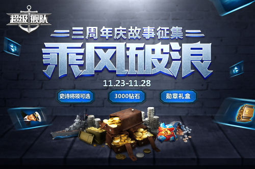 锦鲤活动如果还没能让大家尽兴的话,那么周年庆转盘一定让你玩的更嗨!周年庆正式上线共计三天,玩家每天都可以前往活动页面登陆,每人每天三次转盘机会,包含888现金红包、橙色配件以及周年纪念礼盒等好礼等待大家转盘抽取!同时,我们在游戏社区内同步开启故事征集感恩回馈活动。三年一千多个日日夜夜,在怒海激战之中相信你也有不少精彩故事,兄弟情、军团情谊都可以分享出来,通过两轮点赞投票得出史诗将领、海量钻石的最终赢家!