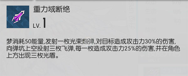 能量技能(重力域断绝)伤害稍弱,但是能在梦酱上方增加光盾防御,达到“白嫖效果”。