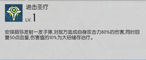 普攻技能(进击圣疗)伤害的同时还能给自己回血,同时伤害值的一定比例储存为大招的治疗值。