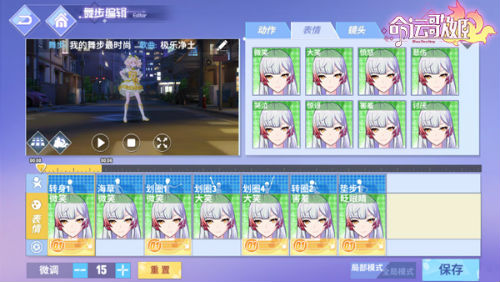 除了可以编辑自己的舞步外,歌舞姬表演时的表情和镜头切换设置都能定制,可以说是自由度极高了!在表情和镜头标签中,也有大量素材供玩家选择,大笑、害羞、wink等表情一应俱全。每个动作可根据歌曲进行快/慢调节,再配合表情和镜头的切换,经过各位连接者的细心搭配,一套完美的DIY舞步就此诞生!不会MMD软件也没关系,《命运歌姬》的DIY舞步系统就能让你轻松打造属于自己的MMD大作。舞步完成后还能进行发布,让其他小伙伴一起来欣赏和使用你的得意作品吧!