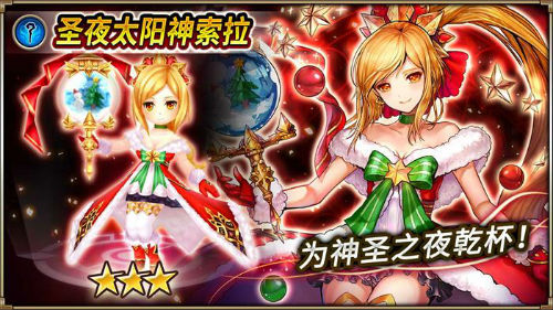 日系殿堂级RPG手游《神域召唤》近期开启周年庆庆典,在这圣诞迎新之际,国服也推出了一系列全新的圣诞角色造型。圣诞券召唤开启!圣夜太阳神索拉召唤!