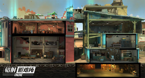 在画面风格上,《辐射:避难所Online》延续了《辐射 避难所》单机版的Q版美漫风格,并且对比单机版,《辐射:避难所Online》的画面细节更加突出,内容也更充实。与《辐射4》写实的画风对比,《辐射:避难所Online》在表现废土的颓败与萧瑟之上,又增添了一分柔美。同时,网络版中引入了《辐射》系列产品中的众多经典形象,还原了每个角色的形象、个性、背景故事,对每个角色做了清晰的定位,并制作了精美的立绘,让角色形象更加立体丰满。