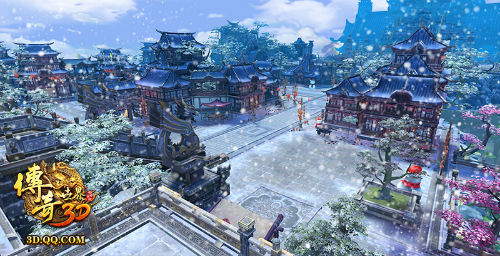 随着新版的到来,《传奇世界3D》中这座地界广阔、建筑华美、城墙巍峨的3D立体中州城也银装素裹换新颜,瑞雪飘飘,覆盖了整个中州城!星罗棋布的亭台楼阁鳞次栉比高低错落,屋檐上、街道中借由雪花的妆点更显圣洁与平和之感,配以烟火、火红灯笼、雪人等景致点缀,让中州城变得更加红火热闹!