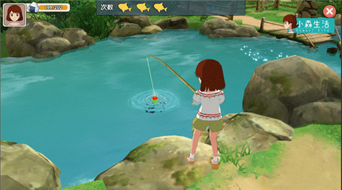 想象一下身处小森的你,站在湖边,甩出鱼竿,水面上鱼漂下沉,泛起涟漪,晒着太阳等待着,禁不住想打盹了……鱼漂突然开始有节奏的上下跃动,在深色平静的湖面是那么显眼,毫不犹豫的提杆,这一刻,未知的惊喜将至,期待着那条跃出水面的鱼吧!