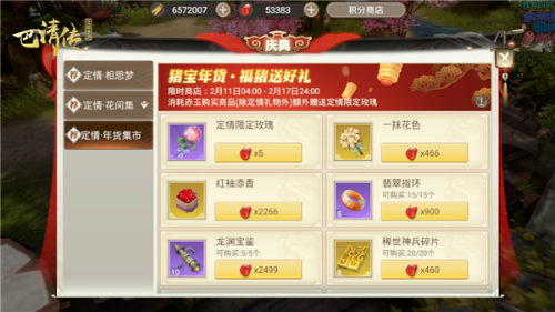 此外,玩家还可以在珍宝阁中兑换龙渊宝鉴、橙色刻印书、神兵兑换令以及各种情人节礼物哦!