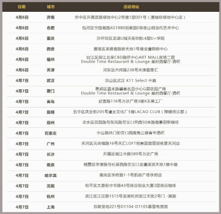 在4月6日-7日期间,你可以前往全国19个城市的指定地点参与官方举办的“炉边聚会”活动,具体时间安排如下: