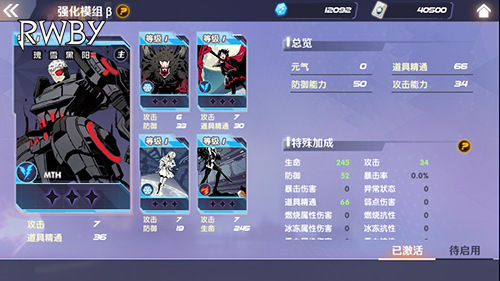 《RWBY》手游中有两种强化体系,分别是模组强化和装备强化。强化模组中,带有随机属性的词缀会随符文强化增加,复数强化模组可以触发指定套装效果,类似【满血时增加攻击力】、【血量低于20%暴击率增加】等。而装备强化里,玩家需要挑战指定关卡获得相应资源,选择强化角色的生命值、防御力、道具使用效果和对怪物弱点的额外伤害。通过装备技能与武器改造,来增强自己的实力吧!