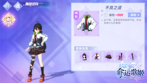 成年人的世界,总是各有各的无奈,各有各的隐忍。抛却懵然无知的童年时代,天生叛逆的青春期或许会是人生中最为怀恋的时代。完全释放自我,随性而又洒脱。《命运歌姬》此次更新服装的风格简直就是为了青春量身定制。帅气的夹克,破损的牛仔裤,轻盈的短裙,高低的丝袜,豹纹的装饰,还有还有闪闪发光的大金链,无一不是备受瞩目的潮流衣着,这一次让我们共同享受一次属于我们的叛逆,做一回潇洒的不羁少年(女)。
