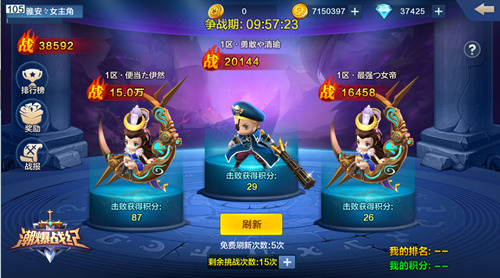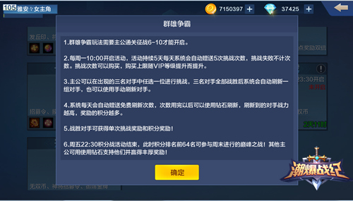 《潮爆战纪》为了增加不同区服的玩家们互相PK的乐趣,特设“群雄争霸”挑战玩法。