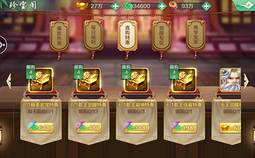 5月30日~6月2日,直购商店限时上架郡主侠客特惠、郡主凝神特惠、郡主觉醒石特惠、精美武学特惠等多重性价比直购礼包!凡角色等级≥5级的玩家,即可享受强势折扣,特惠稍纵即逝,快来珍宝阁,挑选心仪的宝贝,陪你征战武林。